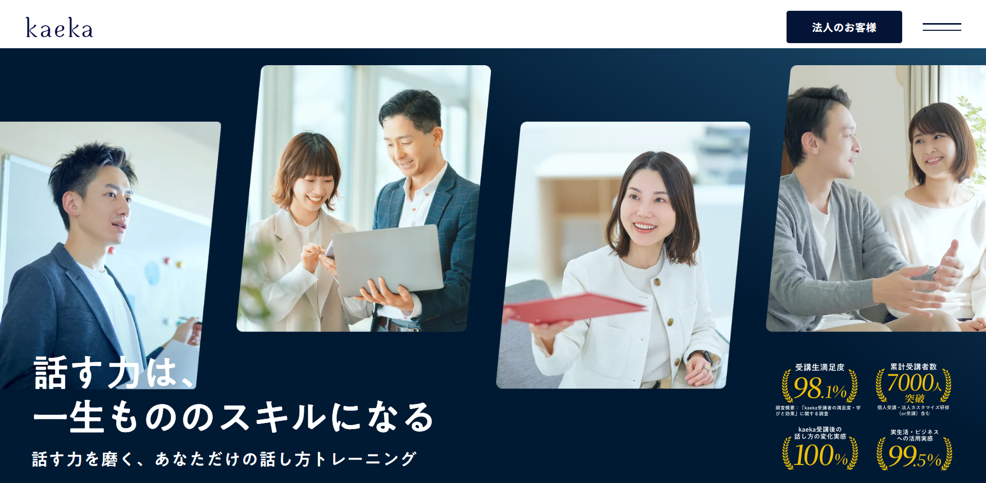 【PR】カエカ 今回ご紹介するのは“話すことが不安”・・・その悩みを、行動に変える、個別指導型の話し方トレーニングサービスです!20代の就活生から40代のマネジメント層まで幅広く、営業・プレゼン・会議・スピーチ・面接など、 「話すことが求められるあらゆる場面」に対応。 社会人・学生を問わず、話すことに自信を持ちたいすべての方に支持されています。 「人前で話すと緊張してしまう」「言いたいことがうまくまとまらない」 そんな悩みに対して、プロのトレーナーがマンツーマンで伴走。 AIによる話し方の強みと課題を見つける独自口頭試験に加えて、課題による定着、フィードバックを通じて、 「伝わる話し方」が定着する本格的なメソッドを提供されています。 継続しやすい仕組みと伴走体制で、離脱率が低く、成果実感が高いのが特長です。 ◆こんな方におすすめ ・営業・広報・接客業など、話すことが成果に直結する職種の方 ・マネジメント層・経営者など、人前で話す機会の多い方 ・声や話し方にコンプレックスがあり、自己表現を磨きたい方 詳細はこちらをクリック どんなコースがあるの? 3か月コース(全12回) 330,000円(税込) 社会性を持った話の構築、意見生成、心に響くストーリーテリング、明瞭な抑揚を含めた話し方など、印象に残る内容構築方法と惹きつける話し方を学びます。 privateコース (3か月以上から希望に合わせて調整) 220,000円(税込) / 月~ 話す力を数値化し、強みと課題に合わせたオリジナルカリキュラムを提案します。内容構築、話し方共に効率的な学習を実現します。 サービスの特徴 商材名 カエカ運営者 T.N※当サイトはアフィリエイトプログラムを利用し宣伝目的で作成しております。