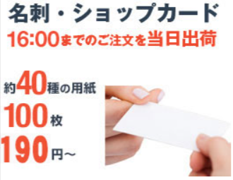 【PR】プリスタ 今回ご紹介するのは、名刺作成・印刷を行っているサイトです♪1.名刺印刷が100枚190円〜にて印刷可能 2.最短当日発送 3.大阪市内であれば当日中のお届けも可能4.豊富な用紙で高品質 こちらのサイトでは名刺だけでなく、ポストカードやショップカード、さらにオリジナルのスマホケースも作成可能です。イベントごとや年賀状などお気軽にご利用できます。 詳細はこちらをクリック おすすめ商品 チラシ・フライヤー ・14時までのご注文で当日出荷・種類豊富かつ特徴が書いてあるので多目的なニーズに対応できる用紙・小ロットから対応してくれます 名刺・ショップカード ・平日の10時~17時までのご注文は最短1時間仕上げ・用紙も豊富で自分好みに作れるのも特徴 おすすめ名刺デザイン 商材名 プリスタ。運営者 T.N※当サイトはアフィリエイトプログラムを利用し宣伝目的で作成しております。