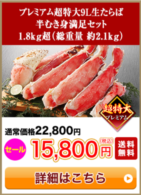 【PR】かに本舗 今回ご紹介するのは、今年のカニ買付量1000トン超! かにの通販サイトです♪ かに購入者の平均単価は12,000円超!お届けされているカニ商品は、 商品特性上売上の大半が11〜12月!年末に近づくにつれ逆放物線状に売上が増加していきます。近年は配送業者の負荷問題により、年末になると商品をお客様に届けることができなくなる可能性もありますので、早め早めのご注文をおすすめしております! 詳細はこちらをクリック おすすめ商品 9Lボイルたらばがに肩脚1肩 18,800円 ・むっちむち肉厚でジューシーで食べ応え満点・かにを知り尽くした熟練技で極上の茹で上がり・食べ方もいろいろ楽しめます♪ 9Lたらば半むき満足セット 15,800円 ・たらばの脚肉は食べ応え抜群・半むき身なので調理しやすく、使いやすい・ボリュームたっぷり♪ 自分好みのかにを選べる 商材名 かに本舗運営者 T.N※当サイトはアフィリエイトプログラムを利用し宣伝目的で作成しております。